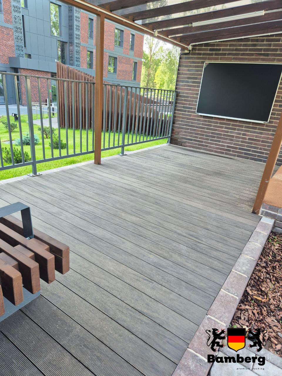 Террасная доска ДПК Bamberg Solid, Brazilian Walnut (Бразильский орех) - это идеальное решение для создания уютной и стильной обстановки на вашей террасе. Эта высококачественная террасная доска изготовлена из древесно-полимерного композита, что делает ее прочной, долговечной и устойчивой к влаге и воздействию окружающей среды.
